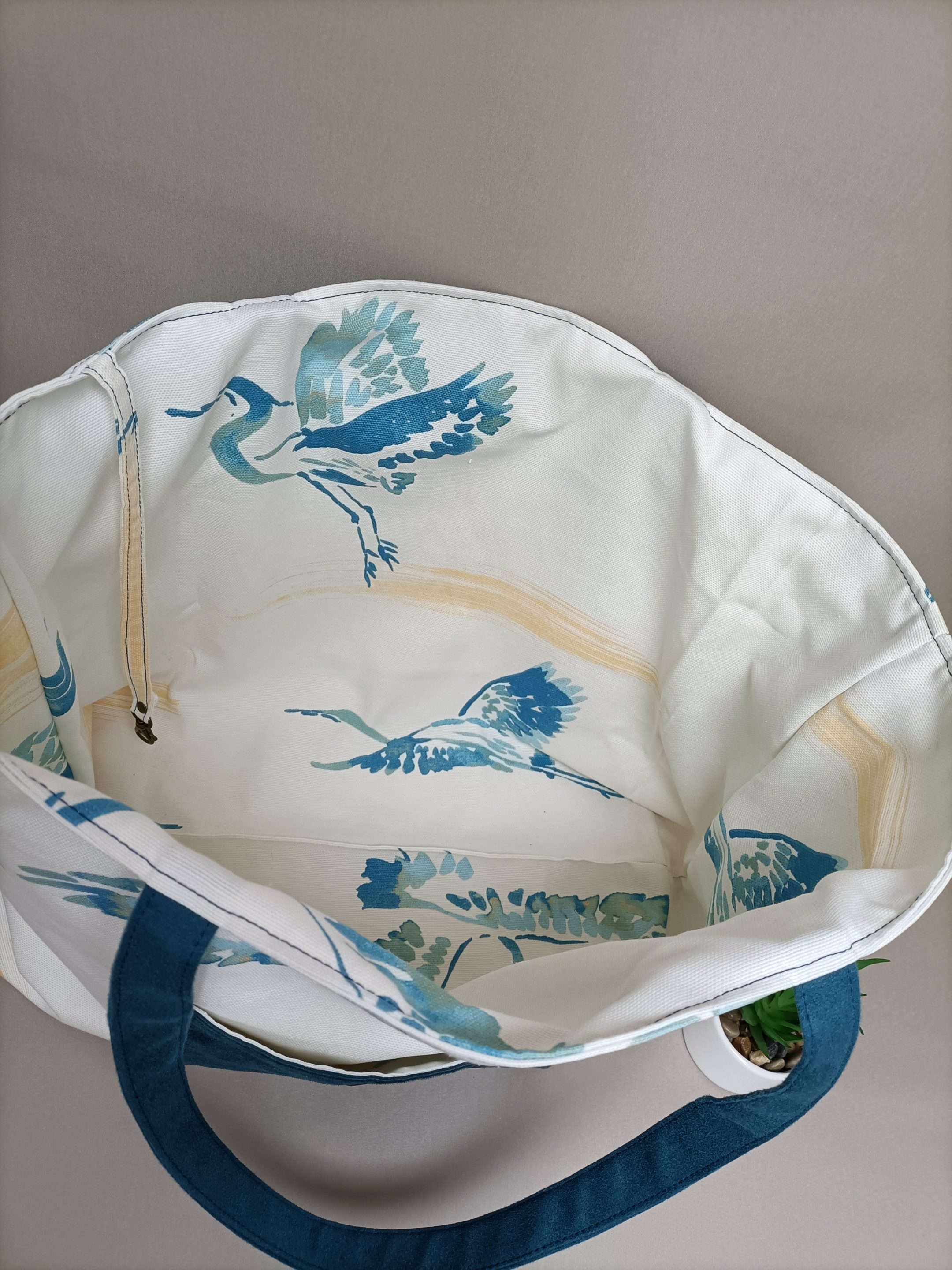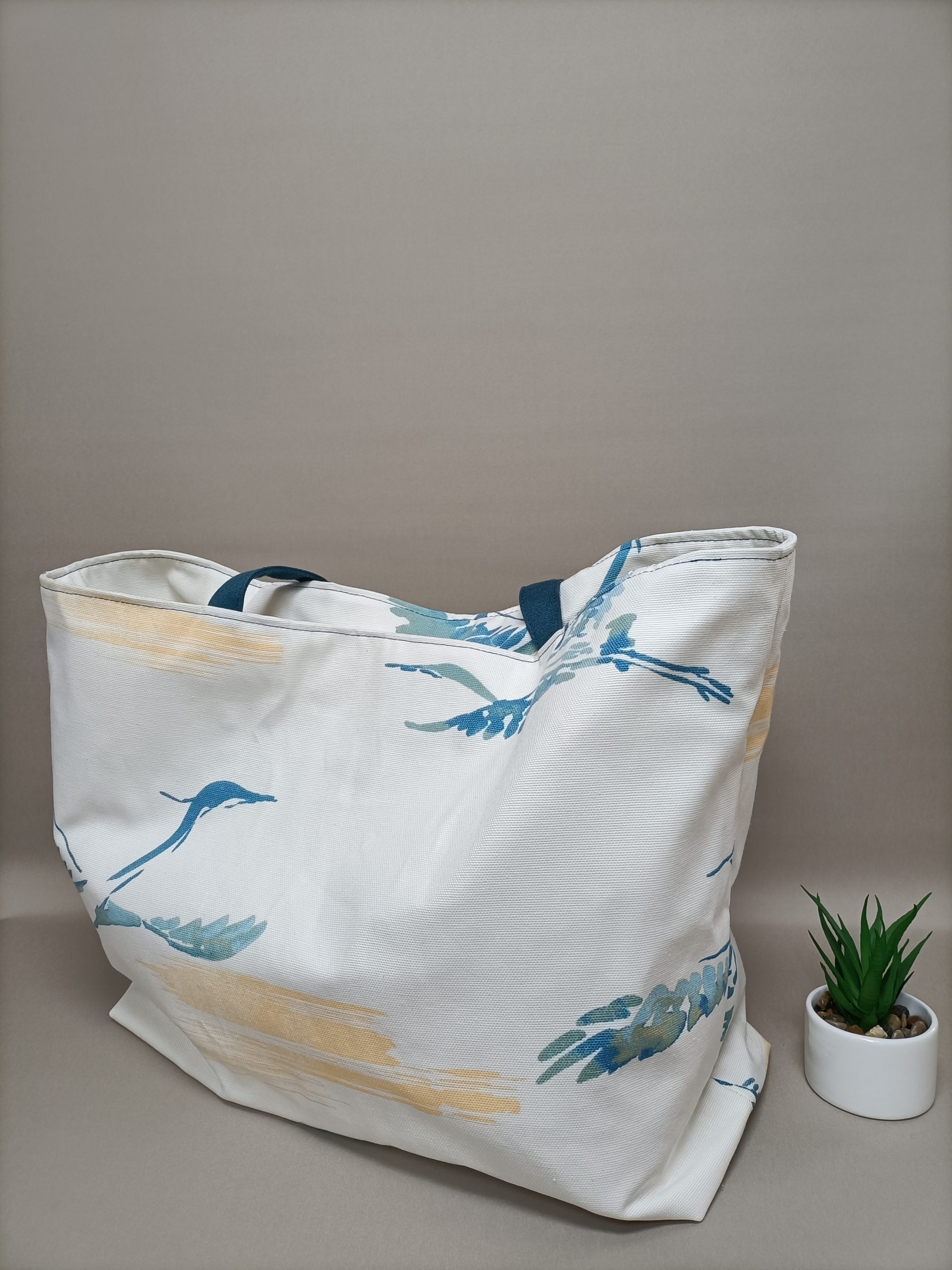Sac en coton réalisé avec ce magnifique tissu imprimé d’un bel oiseau. Le grand sac cabas Aigrette est également assorti à la Trousse Aigrette