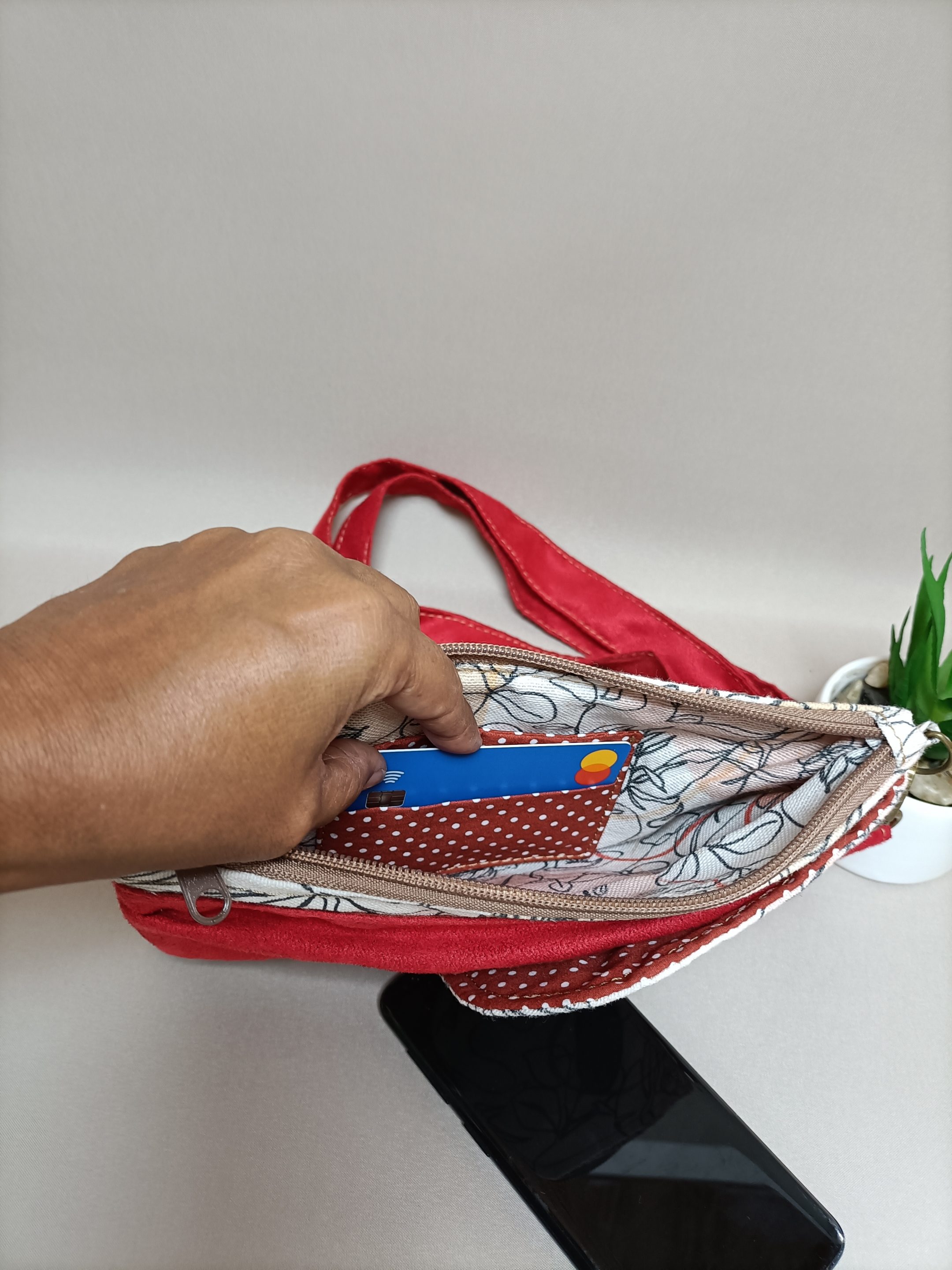 est une pochette que vous pouvez porter en toutes occasions. Elle peut être porter toute l’année, grâce à ses couleurs et à sa forme intemporel. Le mélange des matières suédine et velours est en parfait accord avec ce modèle. La pochette est de forme rectangulaire. Elle est suffisamment spacieuse pour loger votre téléphone, vos clés, paquet de mouchoir, quelques documents etc…Cerise sur le gâteau, cette pochette a un porte carte dans la doublure intérieur. Avec la pochette téléphone, vous restez à la pointe de la modernité tout en affichant votre style avec un modèle unique qui vous ressemble. Choisissez le Sac Cabas toucan pour un total look, les couleurs sont assortis à ce modèle.