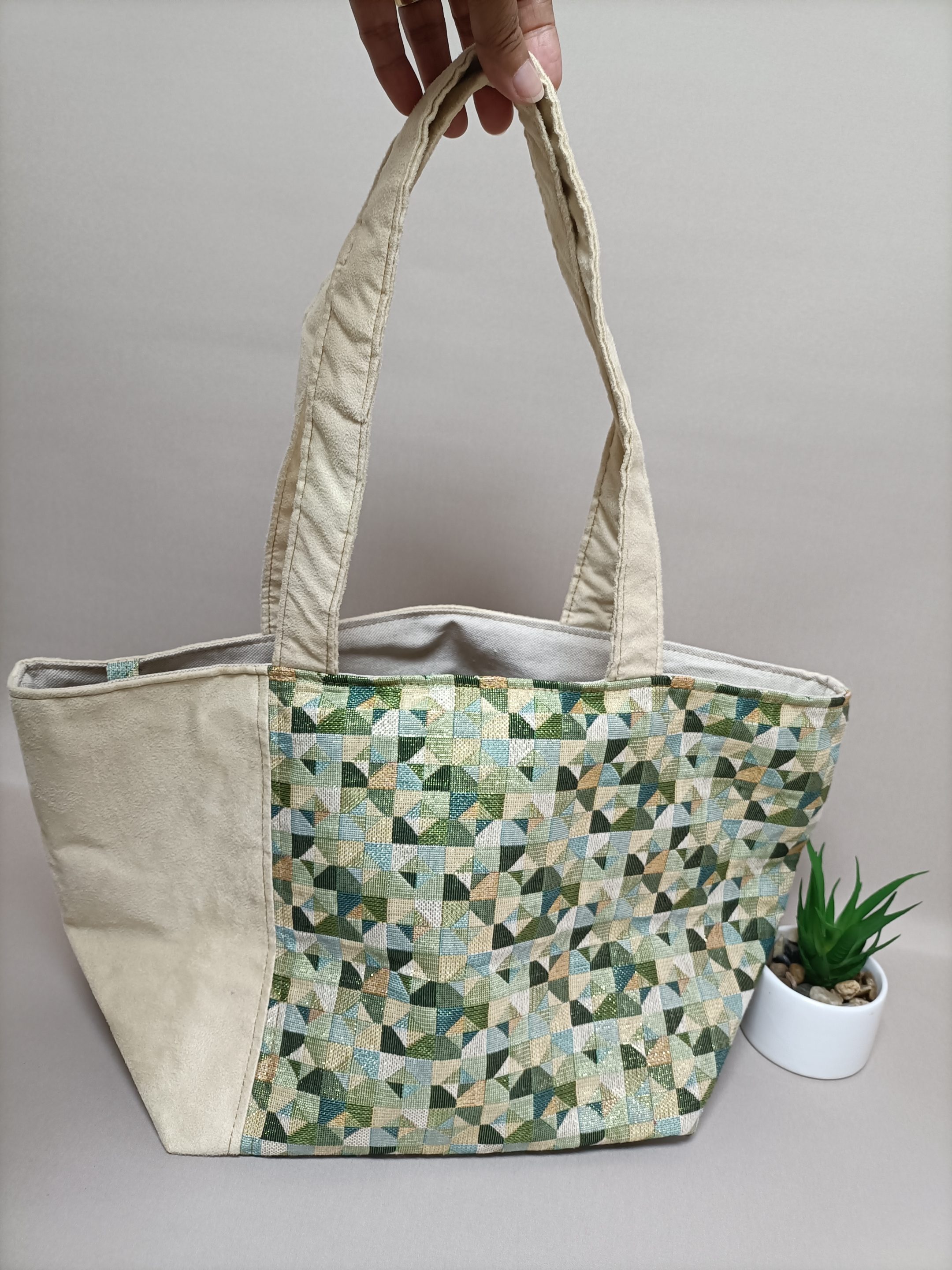 Sac cabas vert/écru