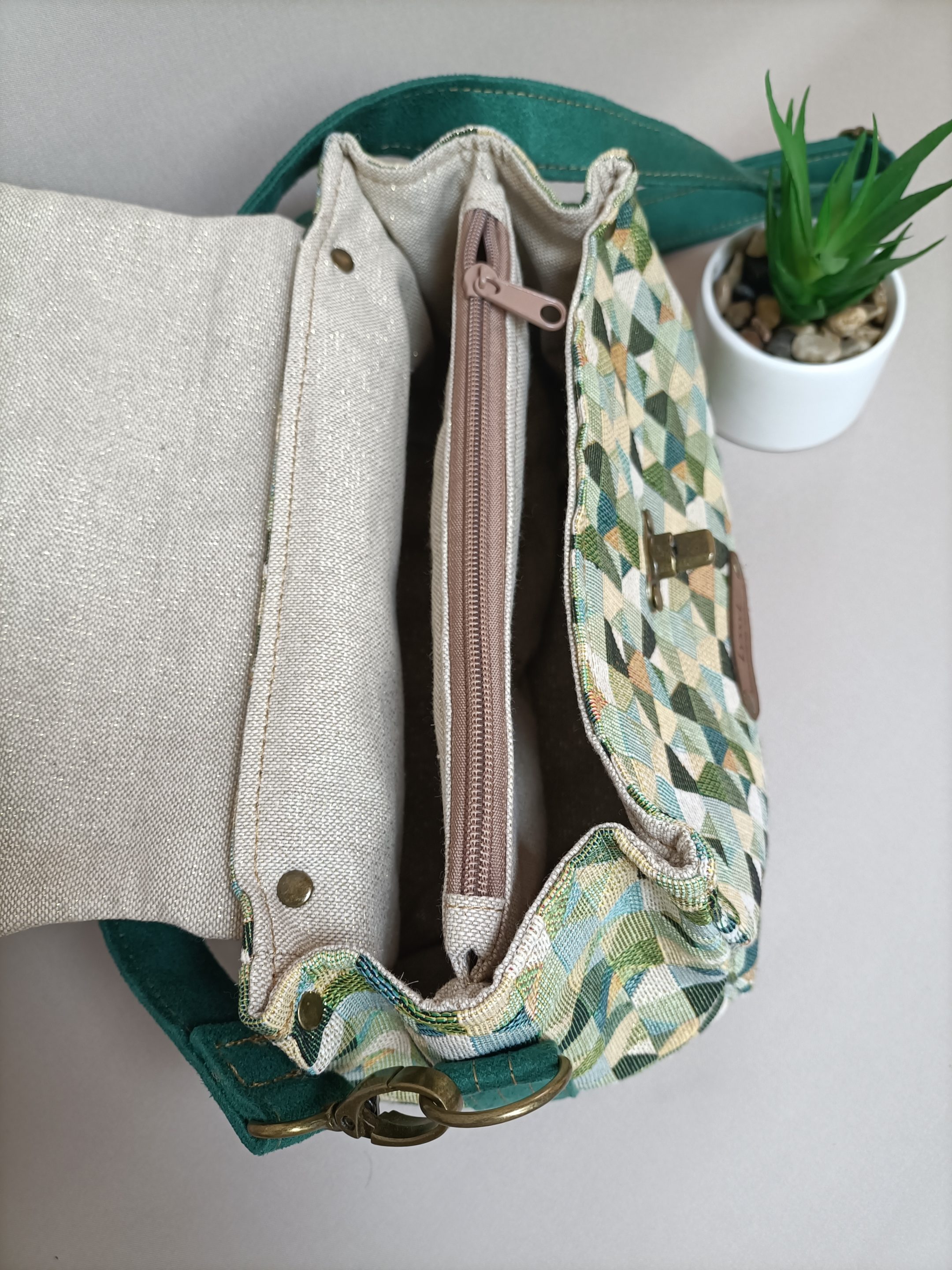 Le sac Caprice est un sac à main moderne et élégant. En effet, pour s’organiser, il offre une poche zippée centrale à l’intérieur, ce qui cré trois compartiments. De plus, il dispose d’une anse amovible et réglable, vous permettant de le porter élégamment à l’épaule pour un look décontracté et chic.
