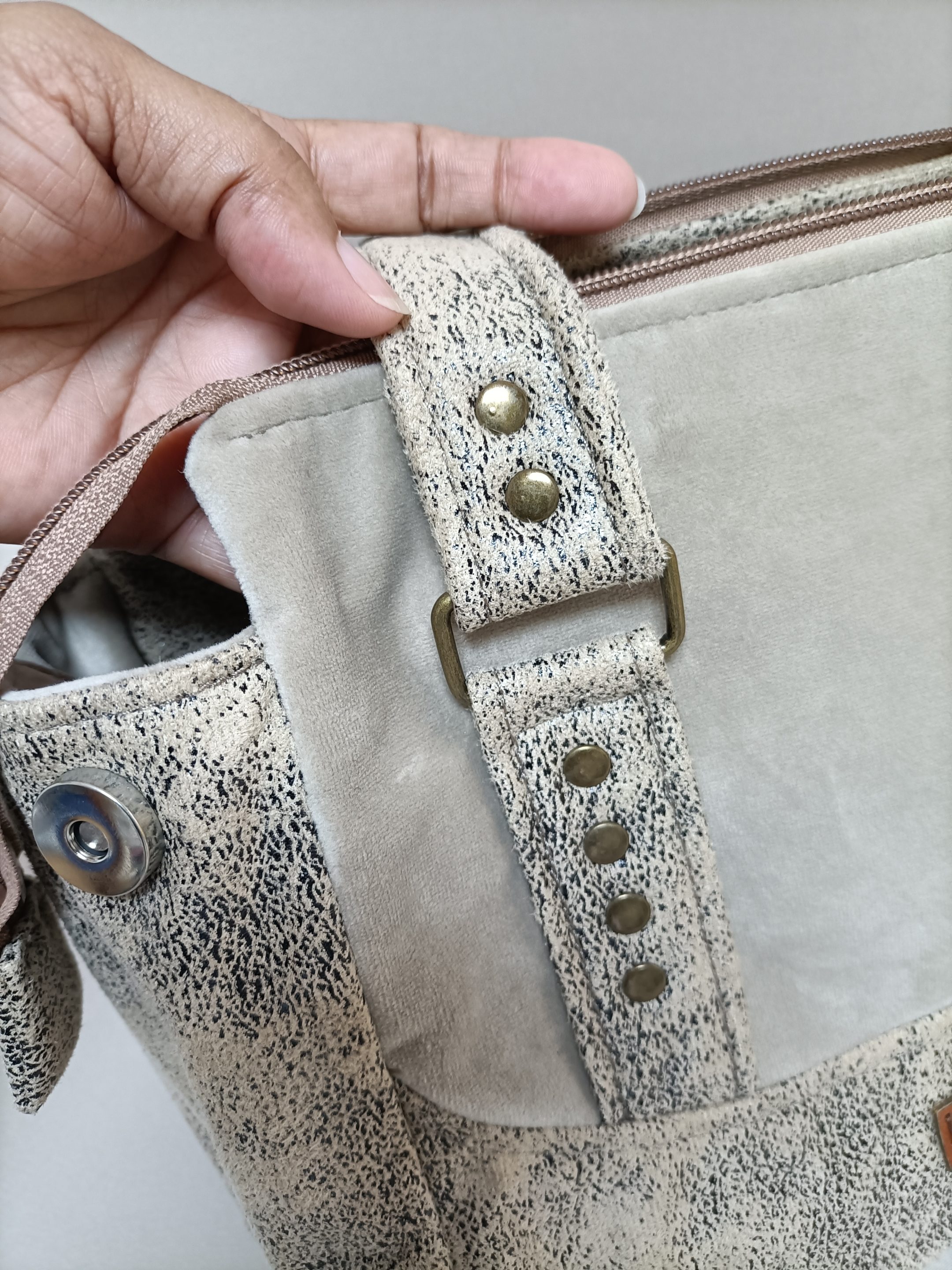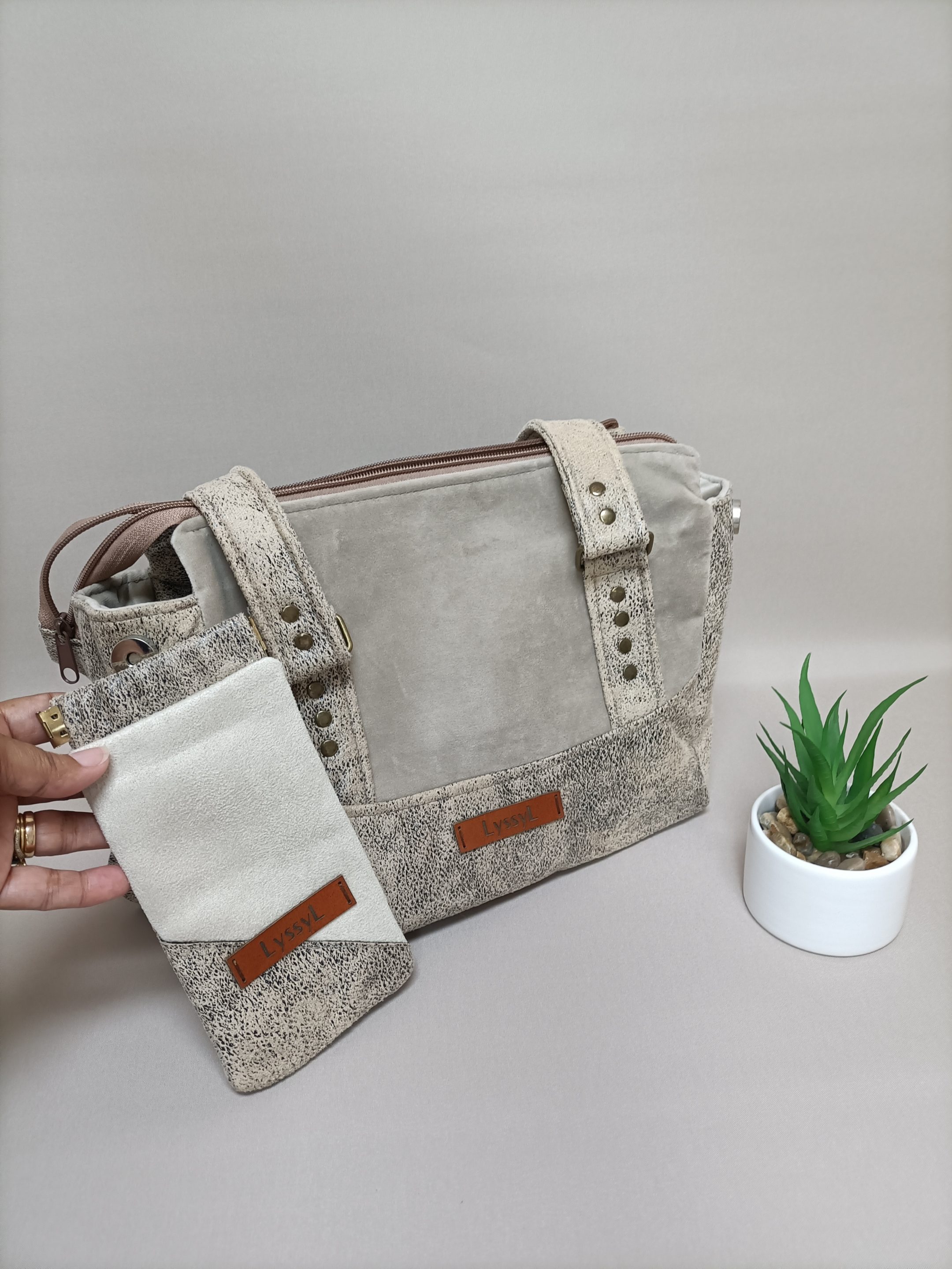 Tout d’abord, l’extérieur du sac se compose de velours beige uni, associé à un velours imitation cuir vieilli, ce qui offre une allure élégante et sophistiquée. En outre, sa texture douce au toucher et sa haute qualité en font un choix privilégié pour celles qui recherchent à la fois confort et esthétique.