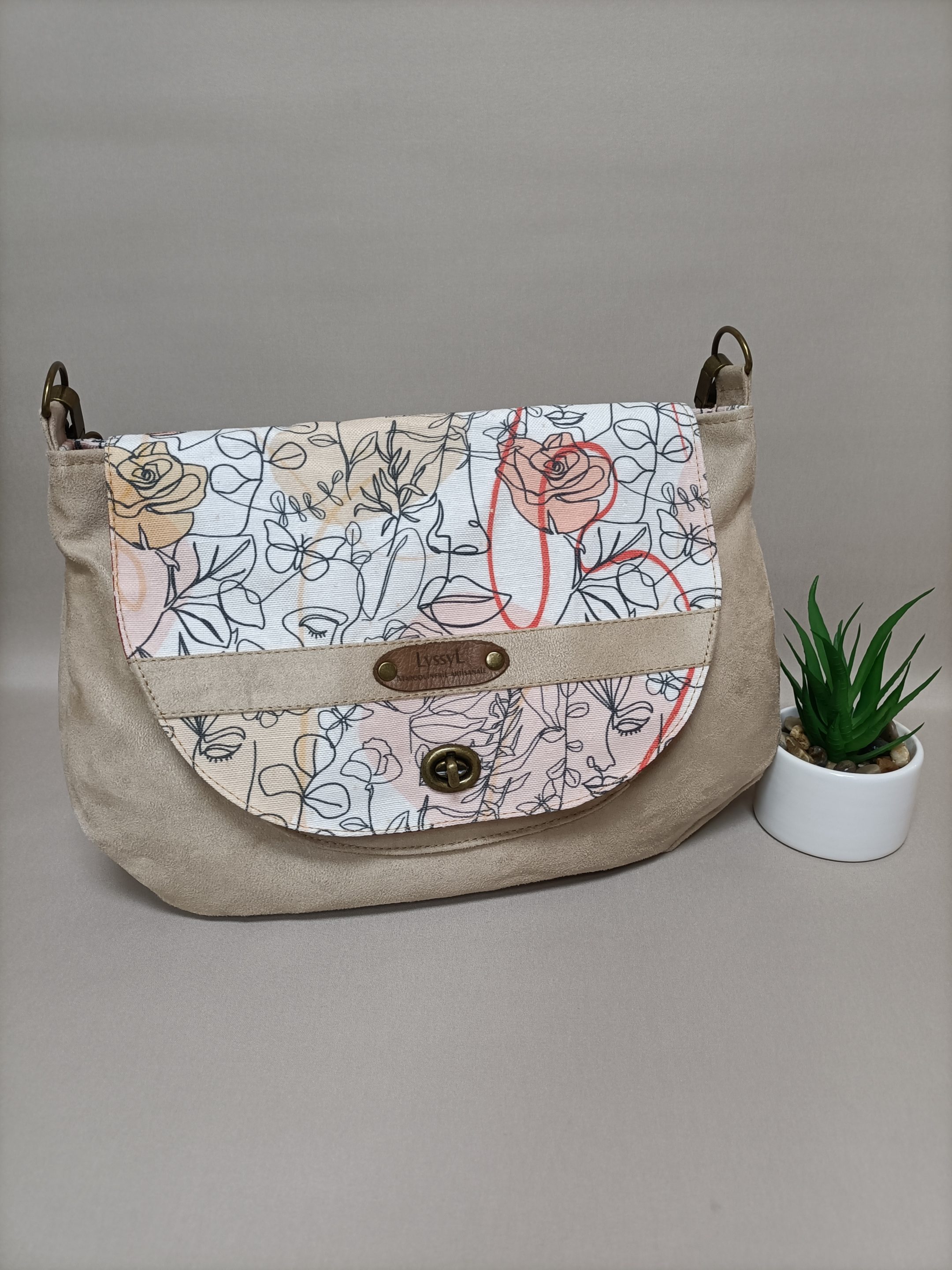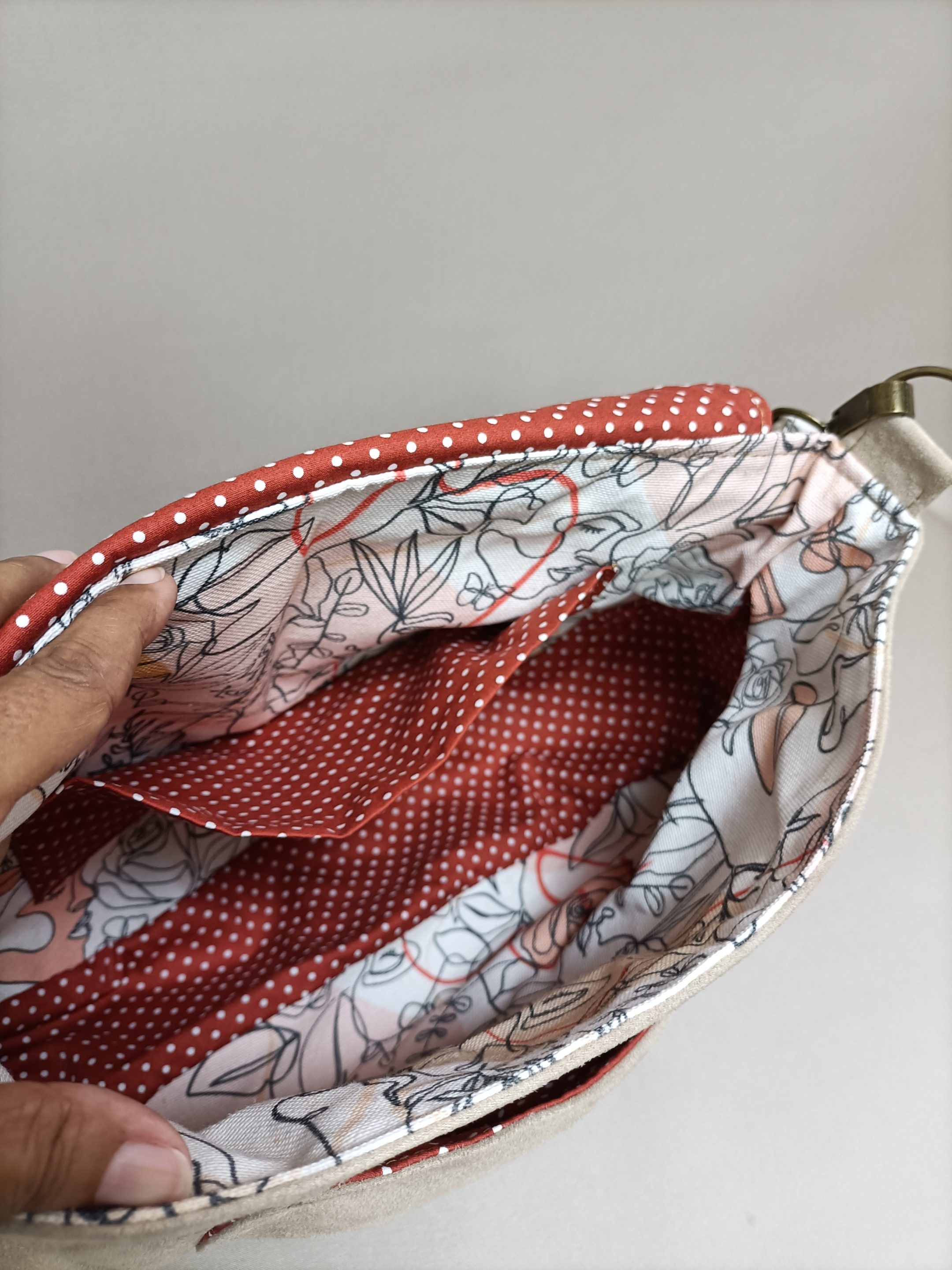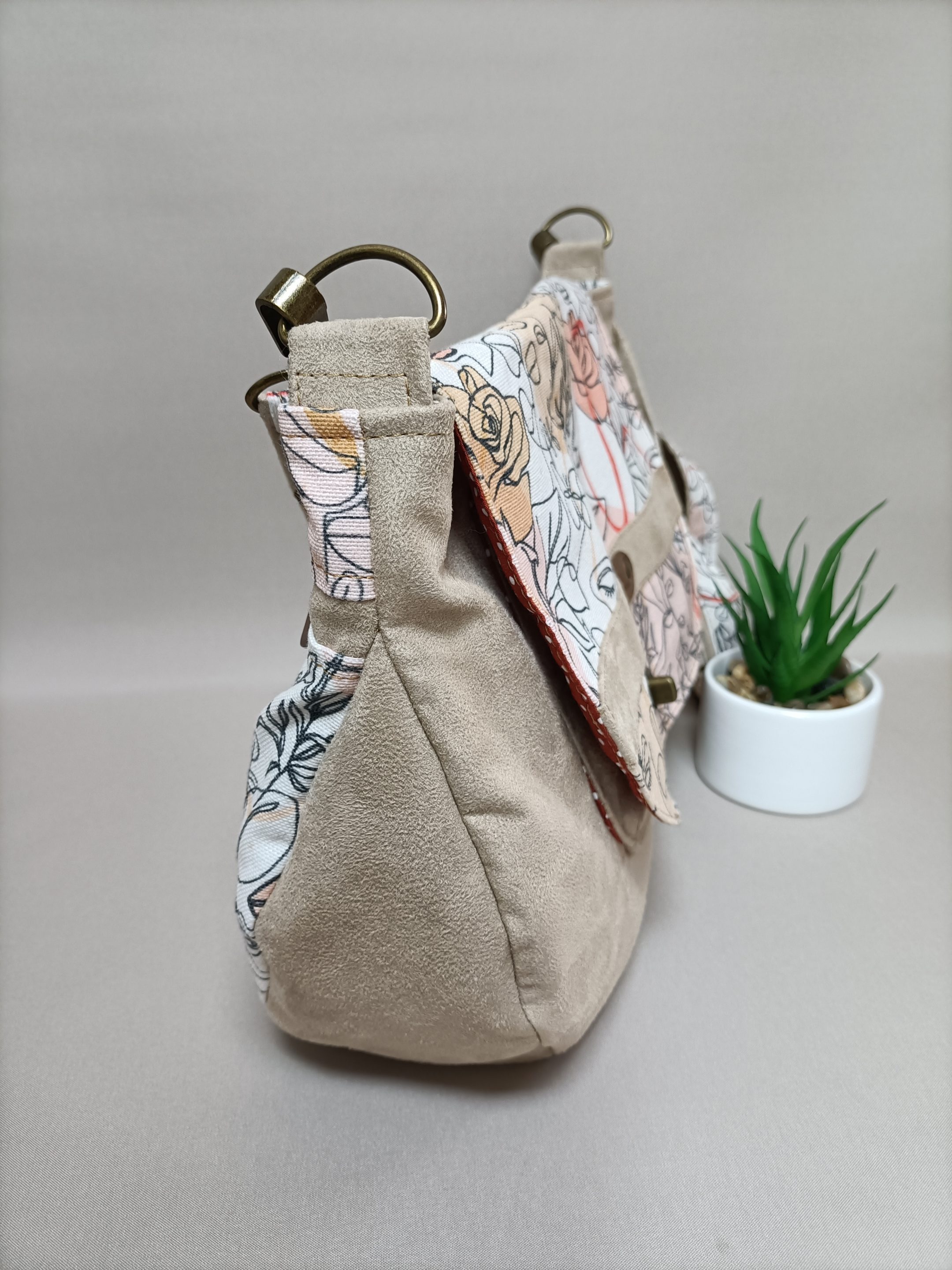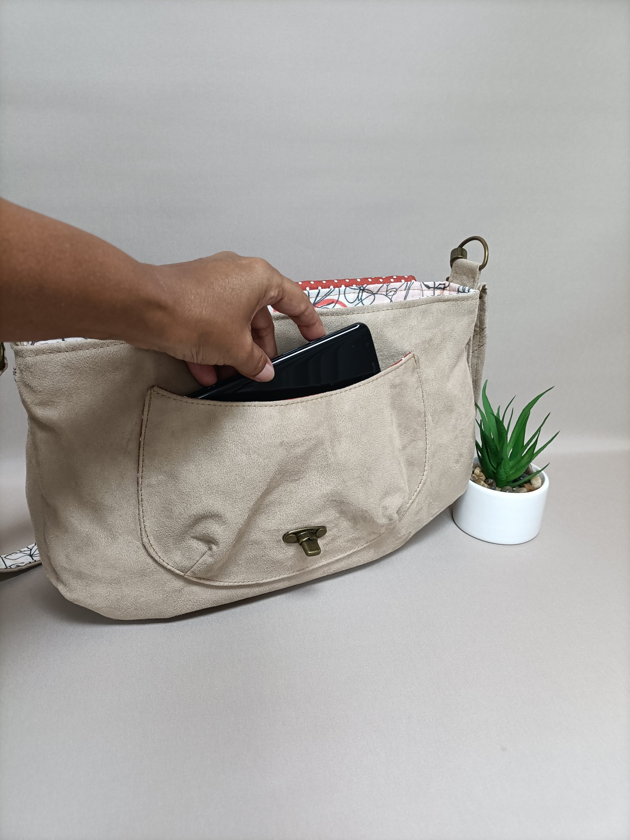 Le sac poème est un accessoire que vous pouvez porter en toutes occasions. Vous pouvez le porter toute l’année, grâce à ses couleurs et à sa forme intemporelle. Le mélange des matières suédine et coton s’accorde parfaitement avec ce modèle. Ce sac a une forme arrondie et il est suffisamment spacieux pour loger votre téléphone, vos clés, un paquet de mouchoirs, quelques documents, etc. Cerise sur le gâteau, ce sac possède une poche plaquée dans la doublure intérieure. Avec le sac poème, vous restez à la pointe de la modernité tout en affichant votre style avec un modèle unique qui vous ressemble. Choisissez la Pochette poème pour un total look, les couleurs sont assortis à ce modèle.